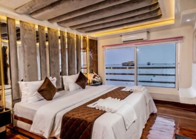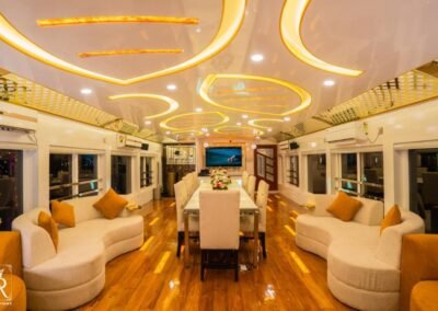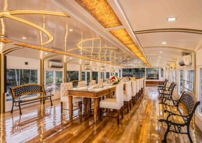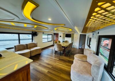 Houseboats typically offer amenities such as bedrooms with attached bathrooms, a dining area, and sometimes even a deck for lounging. Some luxury houseboats may also have air conditioning, TV, and modern furnishings.