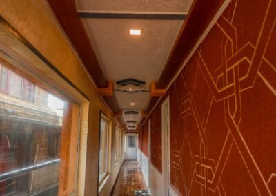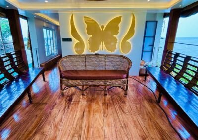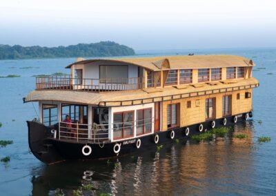 Houseboats in Kerala are traditional Kettuvallams (rice barges) converted into floating accommodations. They are usually made of wood and offer a unique experience of cruising through the backwaters of Kerala.